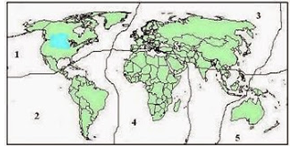 Kawasan persebaran fauna Neartik pada gambar di bawah ini ditunjukkan oleh nomor….