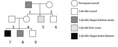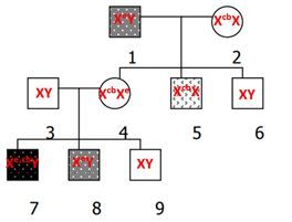 Kelainan genetik terpaut kromosom X lebih jarang muncul sifat fenotipnya pada perempuan sebab perempuan memiliki dua set kromosom X pada gonosomnya. Akan tetapi, perempuan dapat bersifat sebagai carrier pada salah satu kromosom Xnya. Dua kelainan genetik terpaut kromosom X dapat dipelajari menggunakan diagram keturunan di bawah ini. Kedua kelainan genetik tersebut adalah buta warna dan kelainan enzim pada sel darah merah.