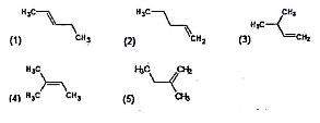 Kelima struktur di atas adalah isomer struktur pentena. Struktur yang mempunyai isomer geometri cis-trans adalah ....