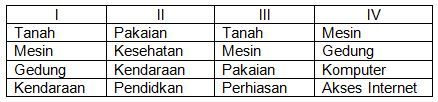 Kelompok barang produksi ditunjukkan pada tabel ....