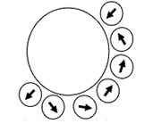 Kompas-kompas disusun melingkar disekitar magnet U yang ditutup oleh sebuah kertas dan membentuk arah jarum jam kompas seperti terlihat pada gambar.