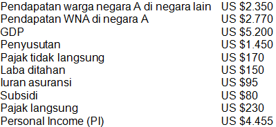 Komponen pendapatan negara A menuniukkan data sebagai berikut: