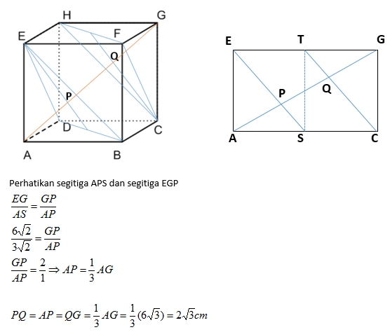 Kubus ABCD.EFGH memiliki panjang rusuk 6 cm. Jarak bidang HCF dan BDE adalah … cm