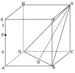 Kubus ABCD.EFGH yang rusuknya 9 cm. Jika P terletak pada AE sehingga AP : PE = 2 : 1 maka jarak P ke bidang BDG adalah…