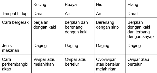 Kucing, elang, buaya dan hiu dapat digolongkan dalam satu kelompok berdasarkan ...