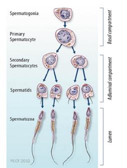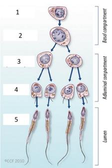 1 = spermatogonium, 3 = spermatosit primer
