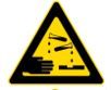 Lambang bahaya yang digunakan untuk larutan asam sulfat, asam klorida, dan asam nitrat adalah ….