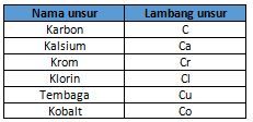 Lambang yang tepat menyatakan unsur karbon adalah ….