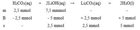 Larutan H2CO3 0,1 M diberi 2 tetes indikator fenolflatein, kemudian dititrasi dengan 50 mL larutan LiOH 0,1 M. Jika titik ekuivalen sudah tercapai dan ditambahkan kembali 25 mL larutan LiOH, maka pH larutan yang terukur adalah ....