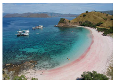 Last holiday, my family and I went on a trip. We went to a beach. This is one of the most beautiful and unique beach in Indonesia. The ocean is blue and clean. It’s surrounded by mountainous area. What makes it unique is the color of its sand. It’s pink. Which one do you think the picture of the beach?