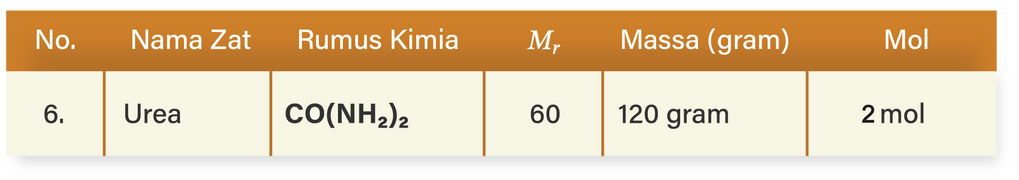 Lengkapi tabel berikut dengan menghitung lebih dulu zat.