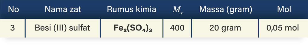 Lengkapi tabel berikut dengan menghitung lebih dulu zat.