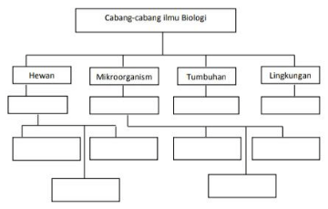Lengkapilah peta konsep cabang-cabang ilmu biologi di bawah ini!