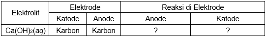 Lengkapilah tabel data elektrolisis berikut: