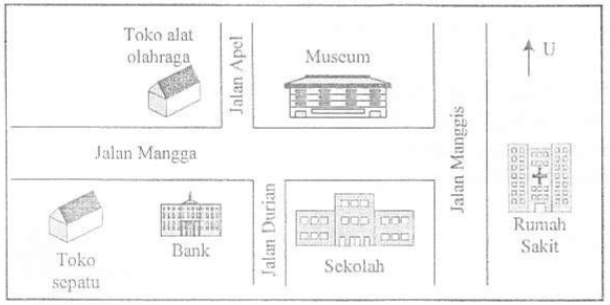berada di sebelah barat Toko Alat Olahraga