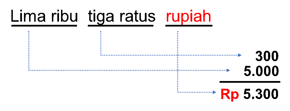 Lima ribu tiga ratus rupiah, jika ditulis dalam bentuk angka yang benar adalah ....