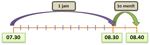 Lina masuk sekolah pada pukul 07.30. Jadwal pelajaran pertama adalah matematika. Jam pelajaran matematika berakhir pada pukul 08.40. Lama Lina belajar matematika adalah….