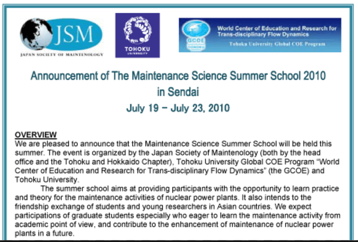 The event is organized by the Japan Society of Maintenology (both by the head office and the Tohoku and Hokaido chapter)