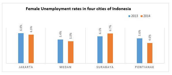 the small decrease of female unemployment rates from 2013 to 2014 in four cities of Indonesia