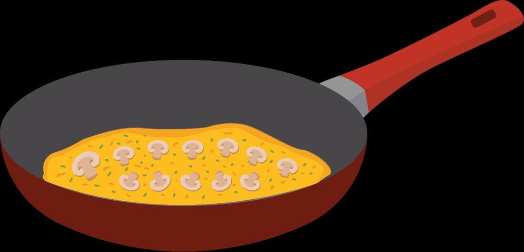 Ingredients: 3 or 4 eggs, 1 tablespoon of butter, 1 tomato, 1/2 onion, a handful of mushroom, cheese, salt, pepper, water, and cooking oil.