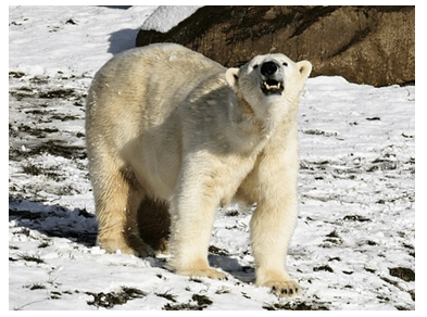 It’s a polar bear. It has a ____ body and a ____ fur. Its teeth and claws are really ____.