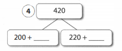 Ingat kembali sifat komutatif pada penjumlahan: Sehingga diperoleh perhitingan: Jadi, isian yang tepat pada titik-titik adalah 220 dan 200 seperti pada operasi di atas.