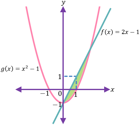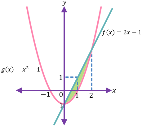 Dengan demikian, luas daerah di antara kedua grafik fungsi tersebut adalah