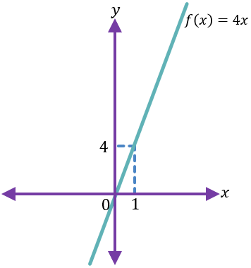 Kemudian, untuk x = 1, didapat y = f(1) = 4(1) = 4.