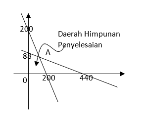 Luas daerah parkir 1.760 m2. Luas rata-rata untuk mobil kecil 4 m2 dan mobil besar 20 m2. Daya tampung maksimum hanya 200 kendaraan. Biaya parkir mobil kecil Rp1.000,00/jam dan mobil besar Rp2.000,00/jam. Jika dalam satu jam terisi penuh dan tidak ada kendaraan yang pergi dan datang, penghasilan maksimum tempat parkir adalah ….