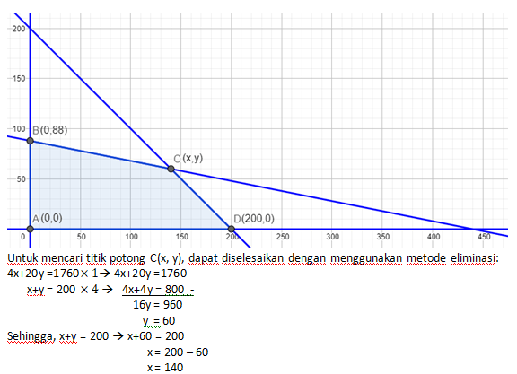 Luas daerah parkir . Luas rata-rata untuk mobil kecil dan mobil besar Daya tampung maksimum hanya 200 kendaraan. Biaya parkir mobil kecil Rp 1.000,00/jam dan mobil besar Rp 2.000,00/jam. Jika dalam satu jam terisi penuh dan tidak ada kendaraan yang pergi dan datang, penghasilan maksimum tempat parkir adalah....