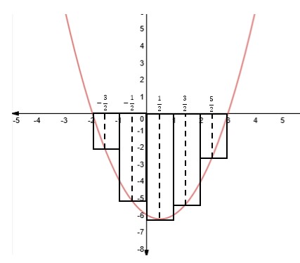 Luas daerah yang dibatasi kurva , sumbu-x dan menggunakan 5 persegi panjang adalah....