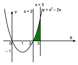 Luas daerah yang dibatasi oleh kurva sumbu X, garis x = 2, dan garis x = 3 adalah ...