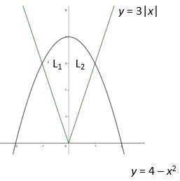 Luas daerah yang dibatasi oleh kurva y = 4 - x2 dan y = 3 |x| adalah ....