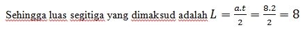 Luas segitiga dengan titik – titik koordinat D(3, -2), E(3, 6) dan F(1, 4) adalah…satuan luas.