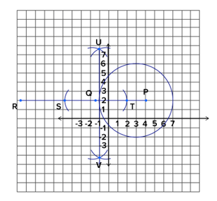Lukislah pada kertas berpetak lingkaran dengan pusat di titik P(3, 2) dan jari-jari 4 satuan panjang. Selanjutnya, lukislah garis singgung lingkaran yang melalui titik Q(-1, 2).