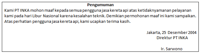 PT INKA menyampaikan informasi