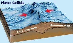 Manakah gambar di bawah ini yang merupakan pergerakan konvergen antarbenua?