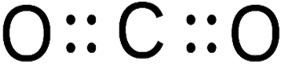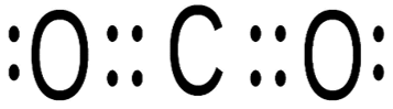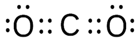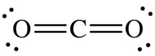 Manakah gambar struktur Lewis yang tepat dari molekul ? (nomor atom C = 6 ; O = 8)