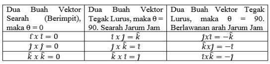 Manakah pernyataan berikut yang tepat terkait perkalian silang vektor …