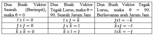 Manakah pernyataan berikut yang tepat terkait perkalian silang vektor …