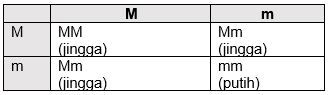 Mawar jingga (MM) disilangkan dengan mawar putih (mm), keturunan F1 semua berwarna jingga, jika F1 disilangkan dengan sesamanya maka keturunan jingga homozigot ada sebanyak ….