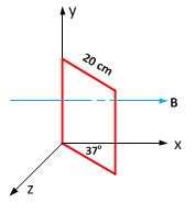 Medan magnetik dengan besar 0,4 T mengarah sejajar sumbu x menembus sebuah kumparan persegi yang bersisi 20 cm seperti terlihat pada gambar di bawah ini. Maka besar fluks magnetik pada kumparan tersebut adalah .…