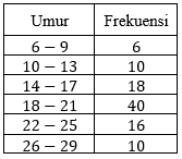 Median dari data umur pada tabel di bawah ini adalah... .