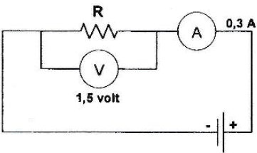 Metode ampere-volt meter dipasang seperti gambar untuk mengetahui besar hambatan R, maka besar nilai R adalah...