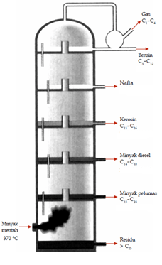 Minyak bumi mentah (crude oil) yang diperoleh dari hasil pengeboran belum dapat digunakan, tetapi harus diolah terlebih dahulu dengan cara destilasi fraksionasional. Dari hasil tersebut akan didapatkan fraksi-fraksi minyak bumi berdasarkan perbedaan titik didihnya. Fraksi-fraksi minyak bumi inilah yang banyak digunakan dalam kehidupan sehari-hari.