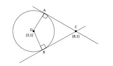 Misalkan titik A dan B pada lingkaran sehingga garis singgung lingkaran di titik A dan B berpotongan di C(8, 1). Jika luas segiempat yang melalui A, B, C, dan pusat lingkaran adalah 12, maka k = ...