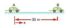 Mobil A dan mobil B memiliki massa yang sama sebesar m. Mobil B berjalan sejauh 30 meter di depan mobil A. Mobil B semula bergerak dengan kelajuan 10 m/s dan mobil A semula bergerak dengan kelajuan 5 m/s. Pengendara mobil A dan mobil B kemudian mempercepat kelajuan mobilnya dengan percepatan masing-masing 0,75 m/s² dan 0,5 m/s².