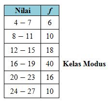 Modus dari data pada tabel distribusi frekuensi di bawah ini adalah….