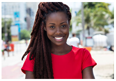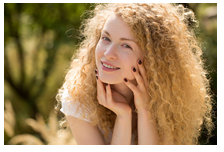 My sister has a friend. She’s Maggie. She’s from Canada. Maggie is a beautiful girl. She has fair skin, long curly hair and brown eyes. She’s so kind and clever. She often teaches me English. Which one is Maggie?