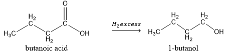 Nama senyawa hasil reaksi antara senyawa asam butanoat dengan gas hidrogen berlebih adalah…